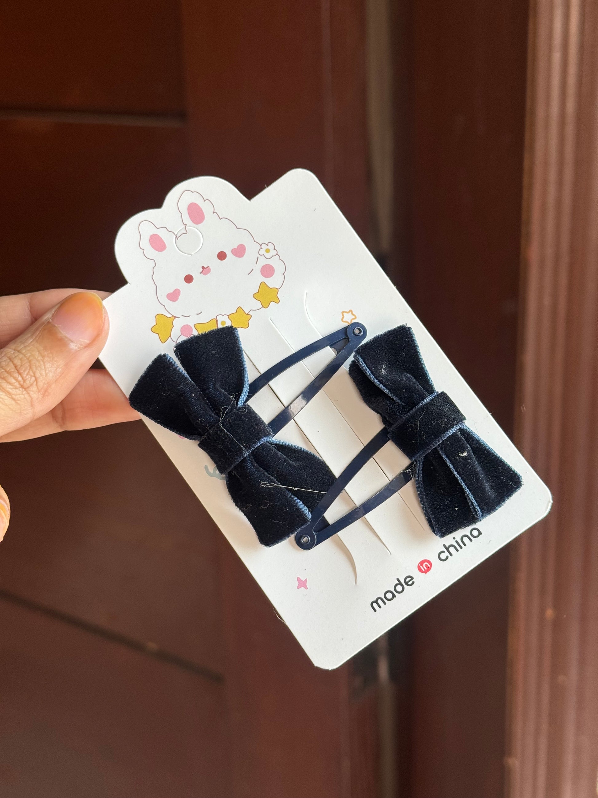 B210 VELVET BOW HAIR PIN PAIR
